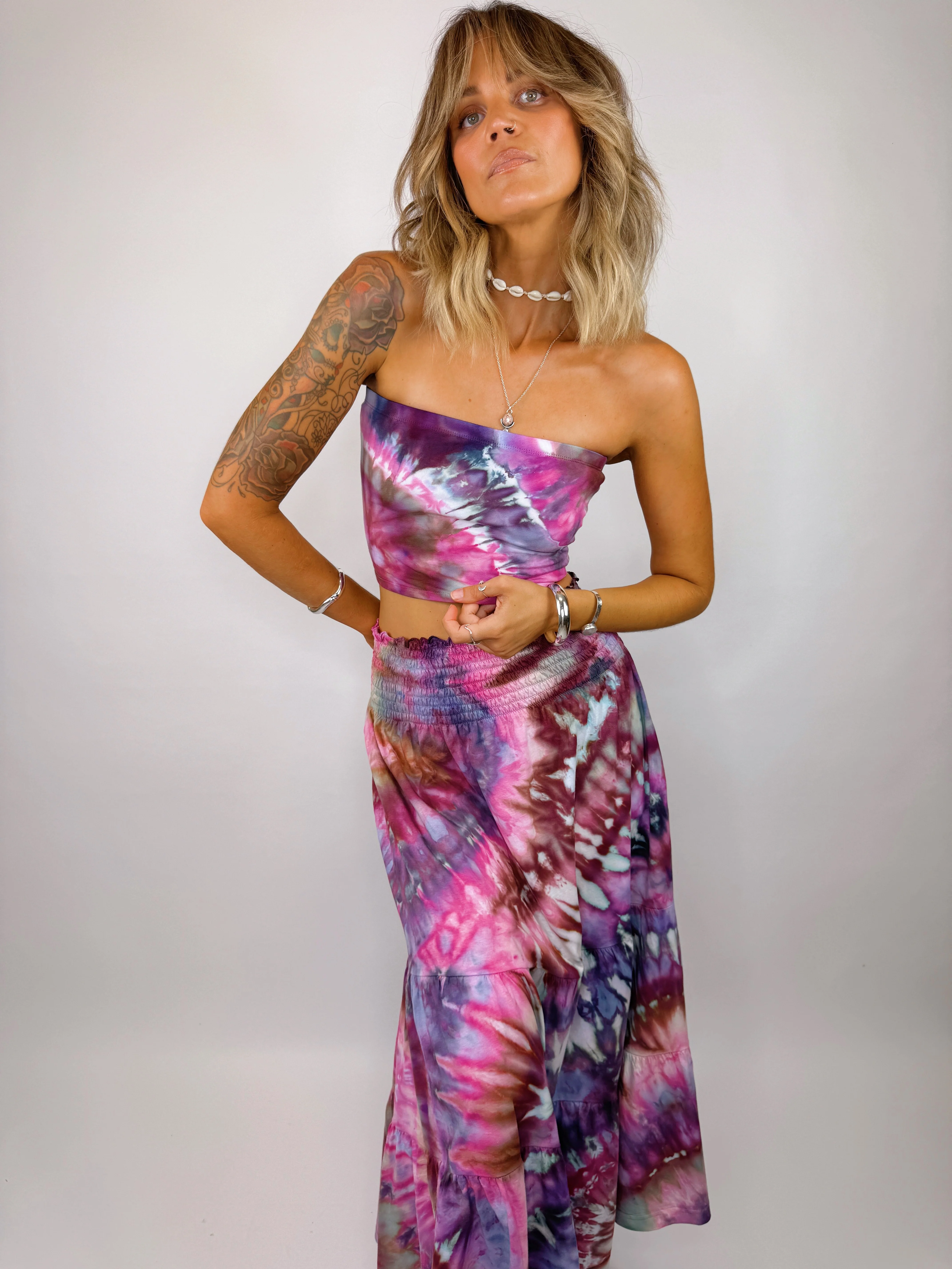 A must-have for your summer wardrobe, this incredibly floaty tiered skirt is designed for effortless style and all-day comfort. The wide, shirred waistband offers a flexible fit, allowing you to wear it high or low on the hips for your perfect look. Pair it with our matching tube top for an effortless set, or mix and match for endless styling options.
